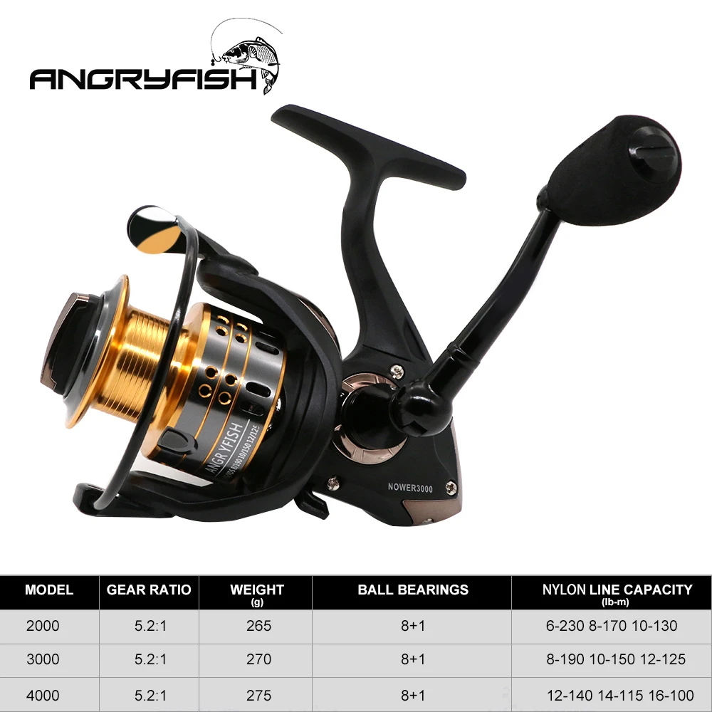 Good Chance of ANGRYFISH NOWER 5.2:1 High Speed Fishing Reel Series 8+1BBs Spinning Fishing Reel Max Drag 8KG Carp